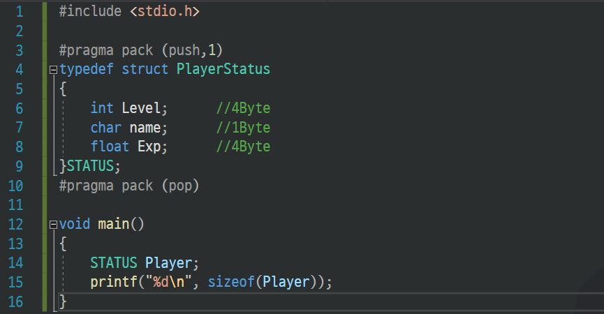 주로 구조체에서 서로다른 자료형을 이용하는경우 메모리 최적화를 위하여 사용한다.